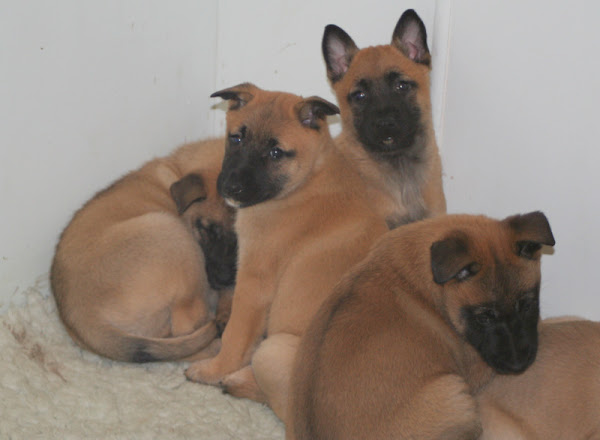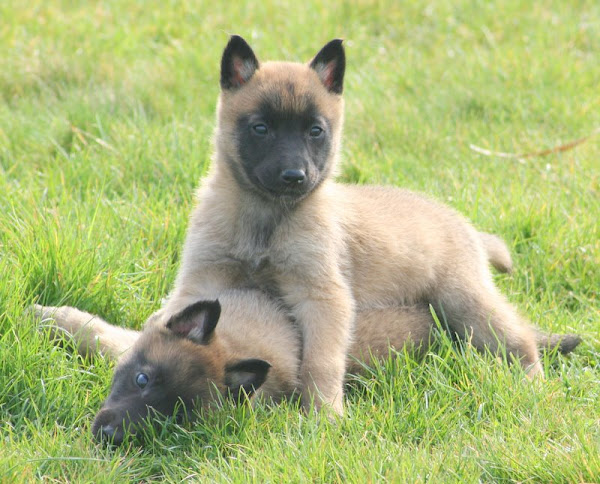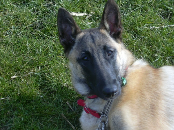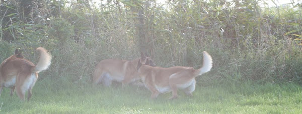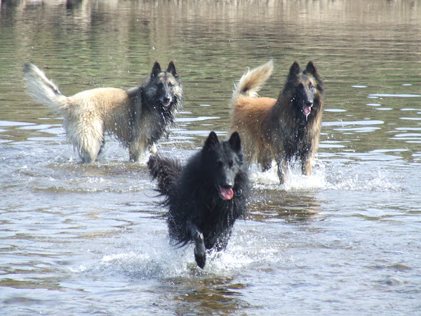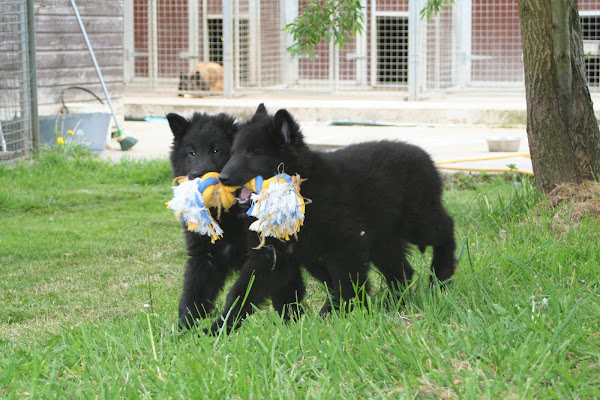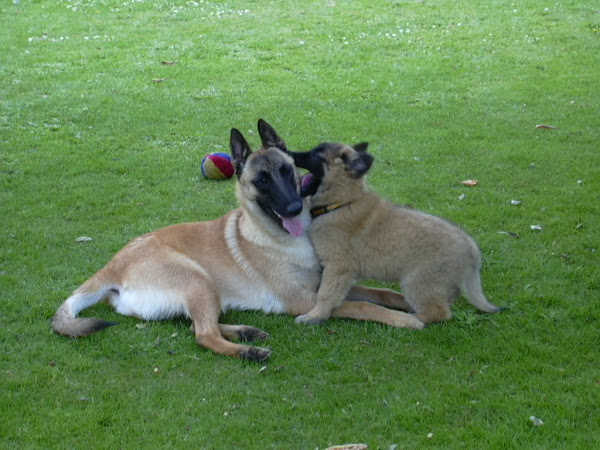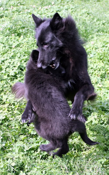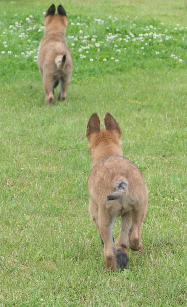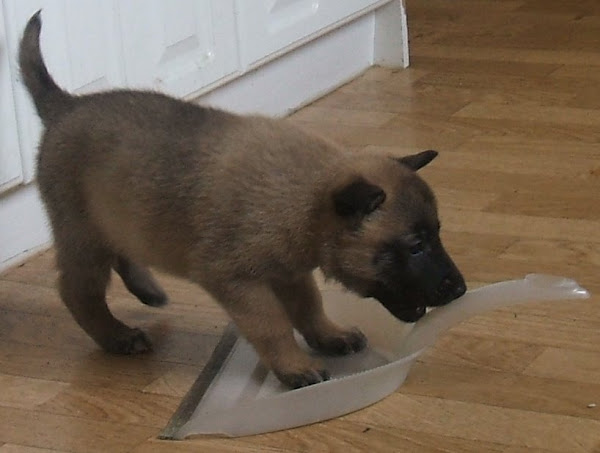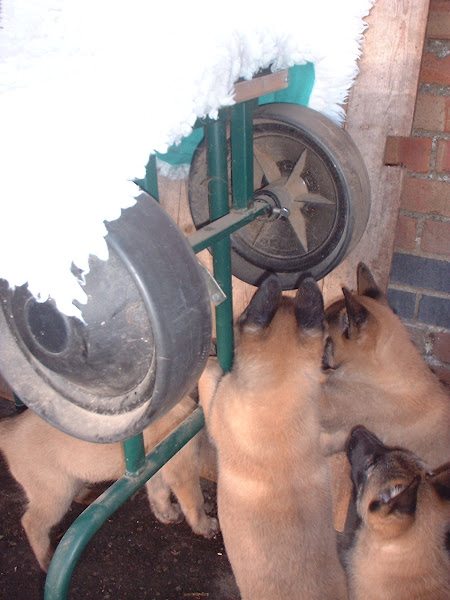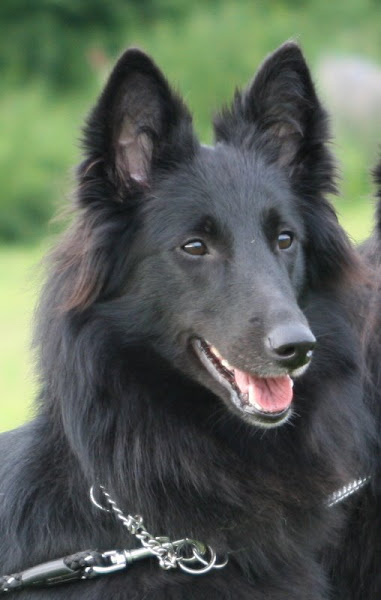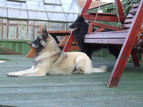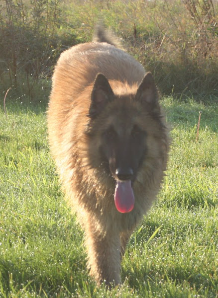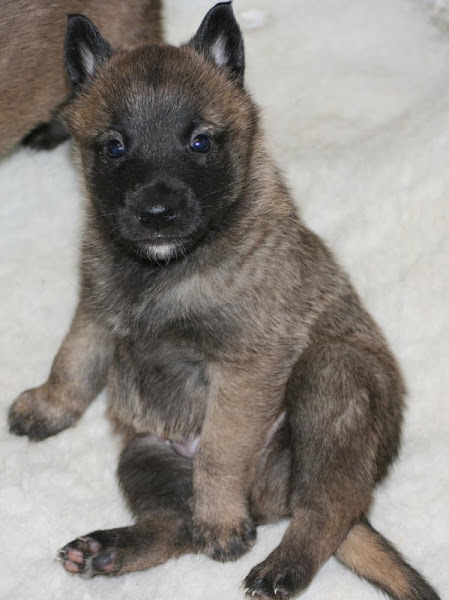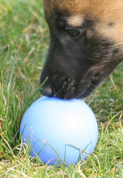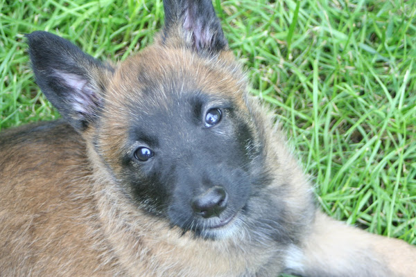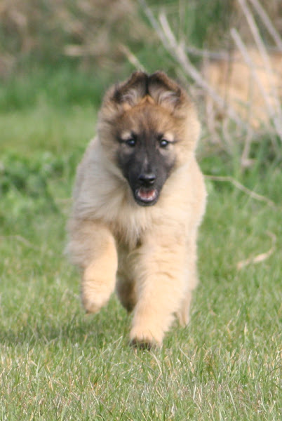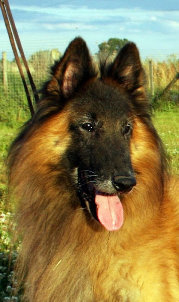 For those of you who are having withdrawal symptoms from not seeing the Tervueren pups here are a few pics. They have such lovely little characters now and you can no longer creep in without them being awake in an instant and clamouring at the door to come out and have cuddles. You cannot even fool them by pretending to go out and sitting quietly--they have antenna, or maybe X-Ray vision. So the consequence of this is that you do not have any pictures of them all fast asleep on their vet-bed or playing together--I need one of Bill Oddies' hidden cameras!
