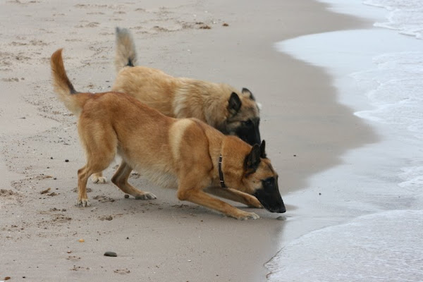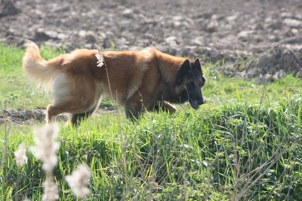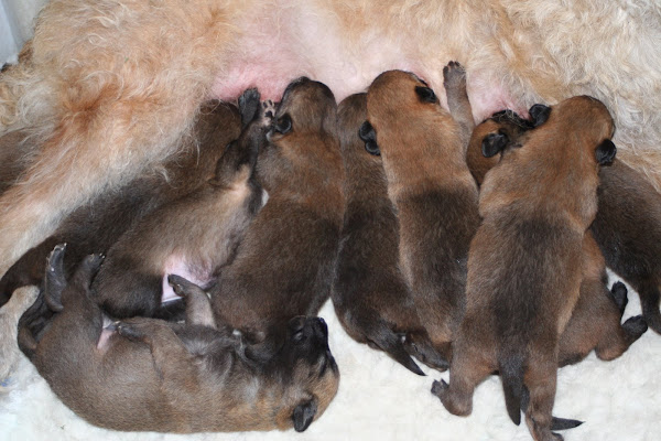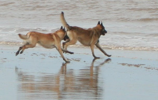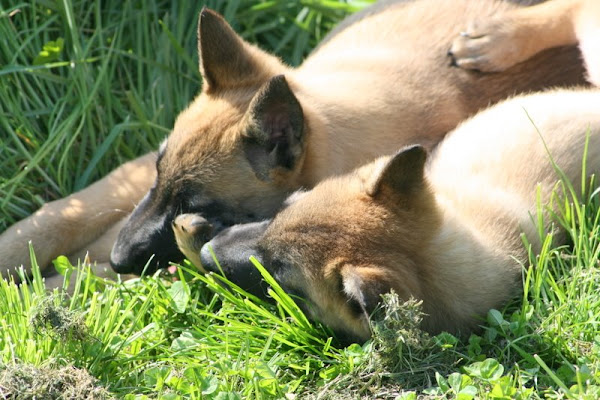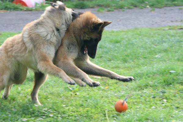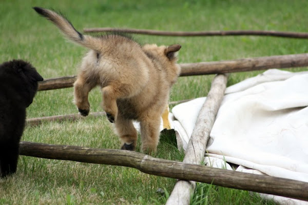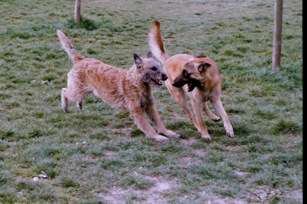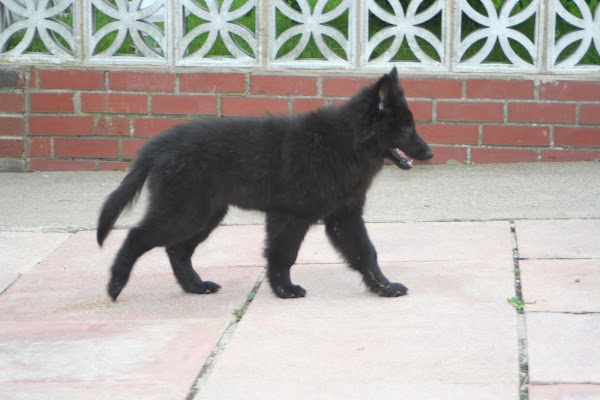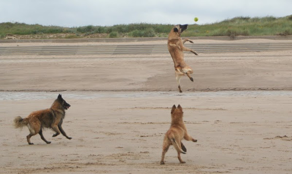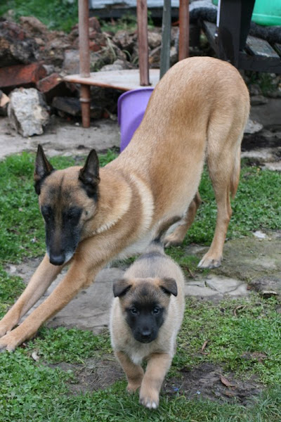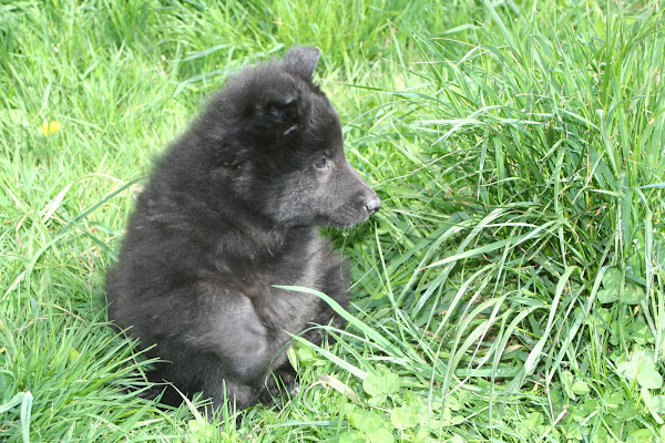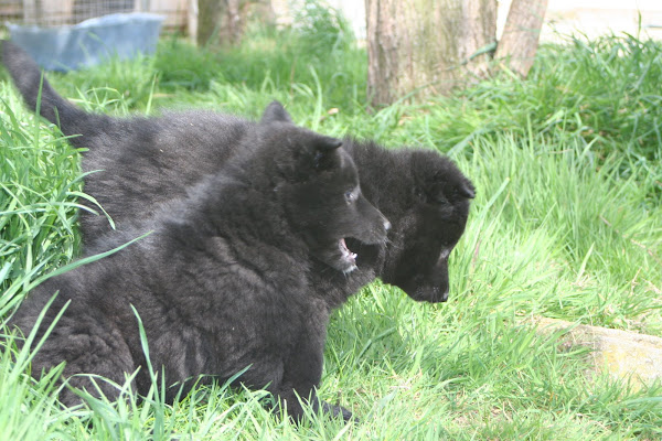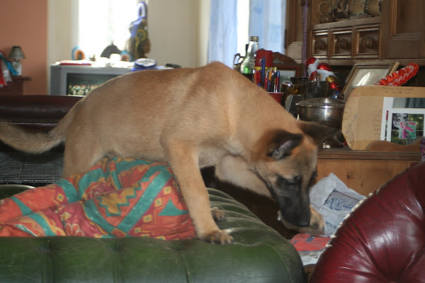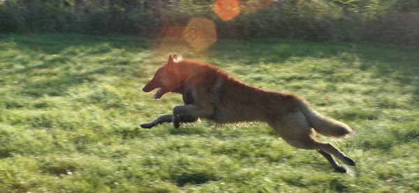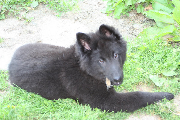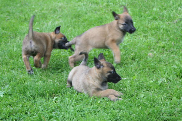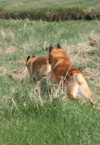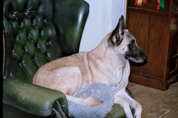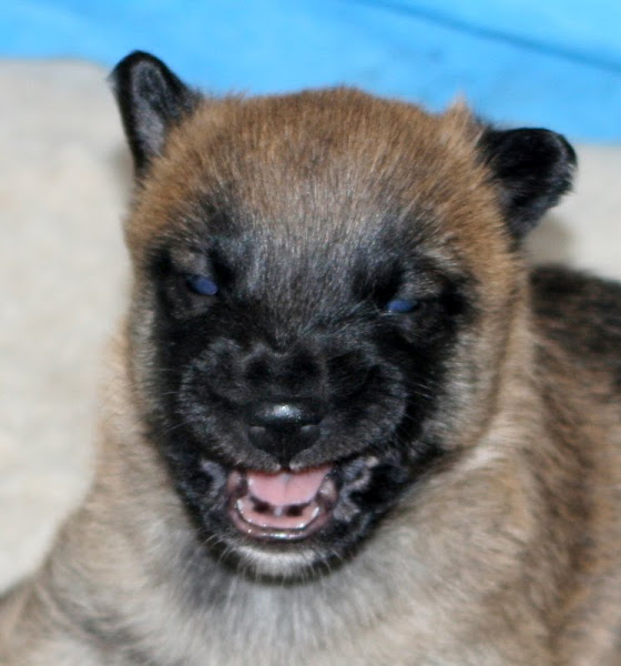 For those of you who are having withdrawal symptoms from not seeing the Tervueren pups here are a few pics. They have such lovely little characters now and you can no longer creep in without them being awake in an instant and clamouring at the door to come out and have cuddles. You cannot even fool them by pretending to go out and sitting quietly--they have antenna, or maybe X-Ray vision. So the consequence of this is that you do not have any pictures of them all fast asleep on their vet-bed or playing together--I need one of Bill Oddies' hidden cameras!